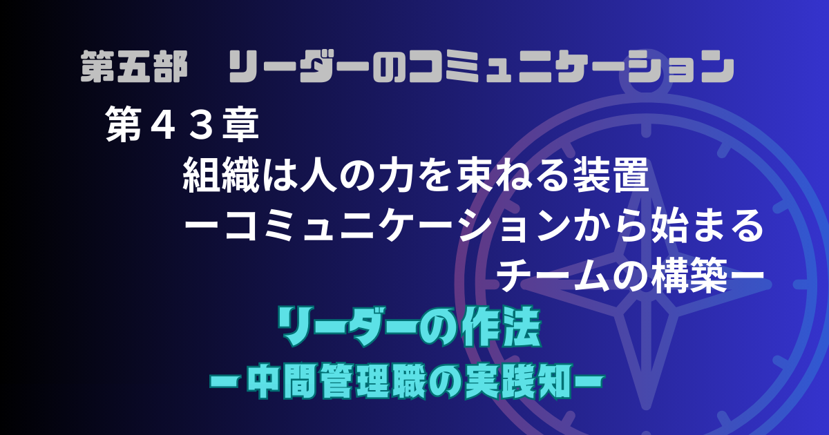行動編のまず第一弾として第五部では、リーダーのコミュニケーション「論」を取り上げます。組織で仕事をするうえで、どうしても必要なのがグループメンバーとの関係性の構築です。そのために最も大切なものが、意思の疎通、つまり、コミュニケーションだと感じています。私なりの失敗や教訓を踏まえていろいろ綴っていきたいと思います。