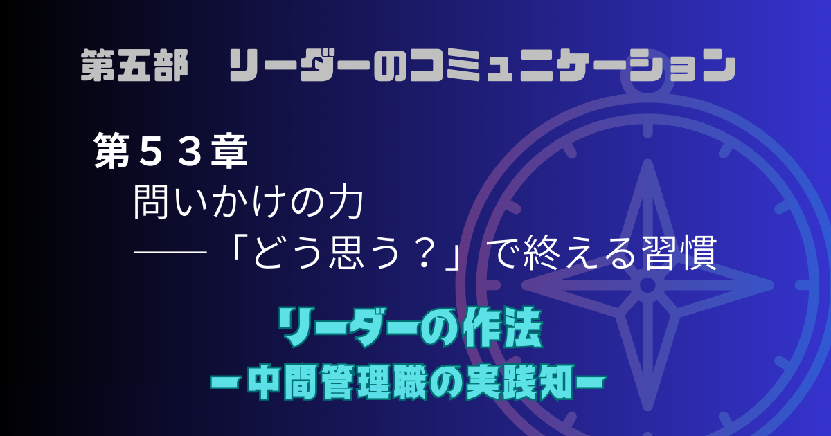 こうした問いを重ねておくことで、自分の思い込みや視野の狭さに気づける。問いかけは、リーダーにとって判断の安全弁でもあるのだ。