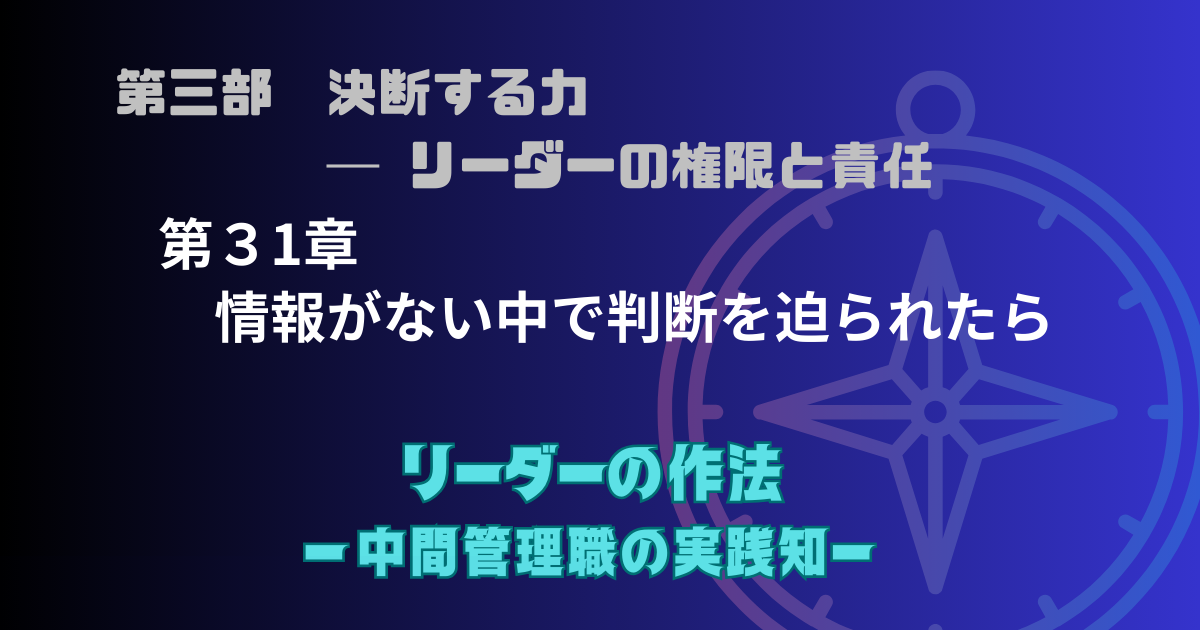 次章では、この第3部全体を振り返り、リーダーにとって大事な役割である「決断」について整理します。
