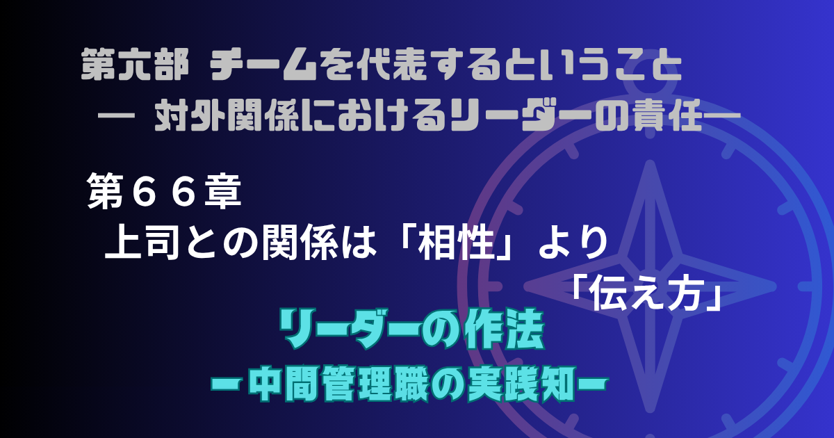 前章(第65章)では、上司をステークホルダーとして戦略的に捉える視点を整理した。本章ではその視点を、日々の意思疎通の場面に落とし込んでいきたい。