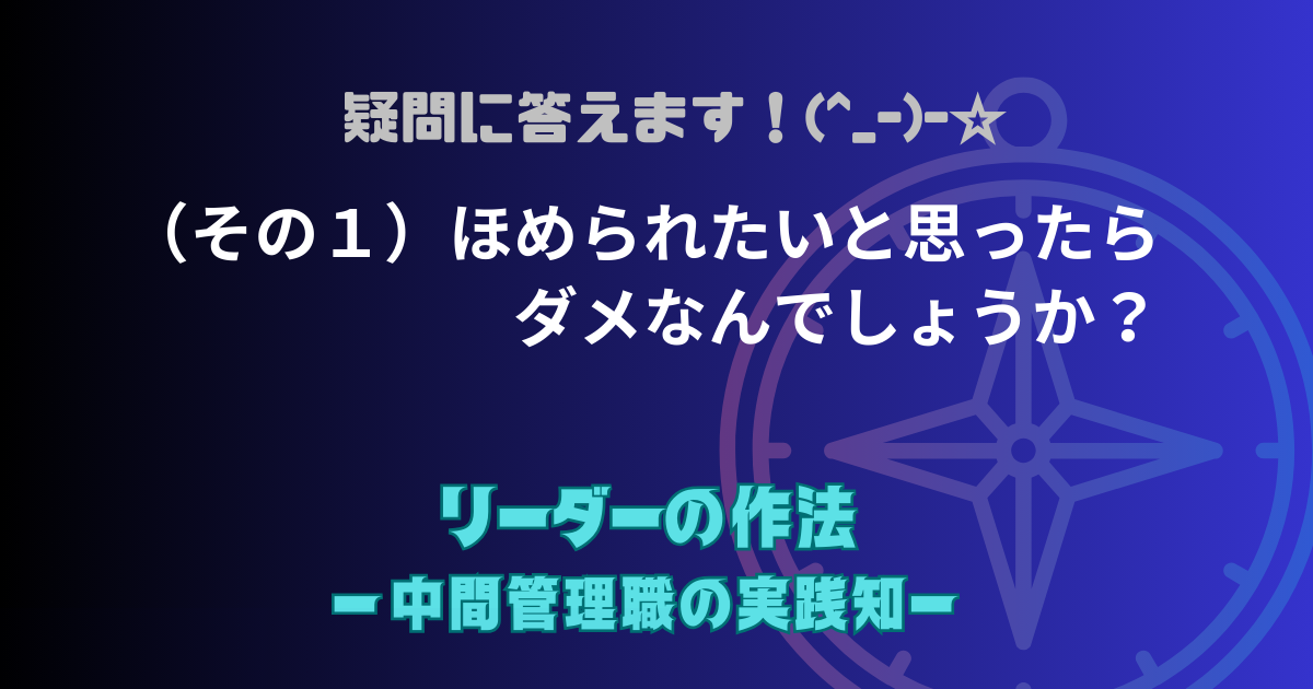 「ほめられようとするなと言われても、ほめられたいという気持ちがどうしても湧いてきて、実際ほめられるとうれしいし、また頑張ろうとモチベーションが上がるんですが、ダメなんでしょうか。」