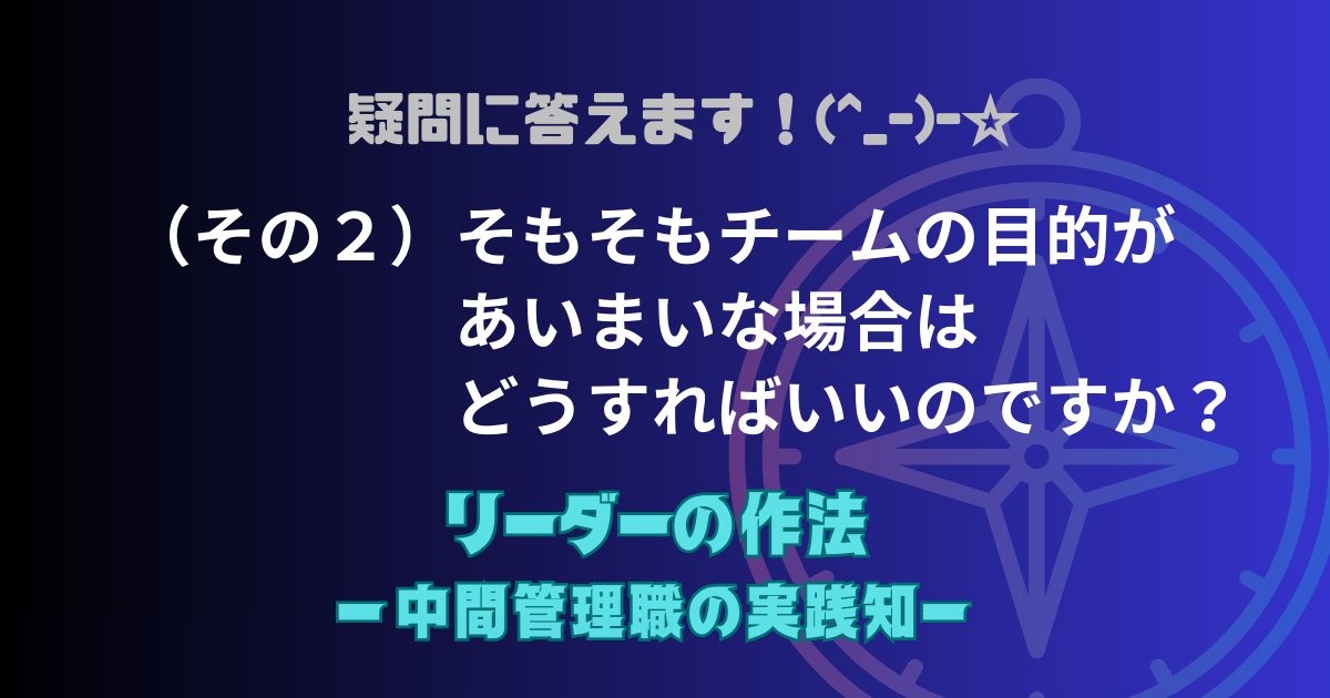 「このブログでは迷ったときに立ち返るべき原点として「チームの目的(組織の存在理由)」 が強調されています。 しかし、多くの場合に会社から数字の目標(ノルマ)は与えられているが、『何のために存在するのか』といった崇高な目的など示されていません。その場合、何を軸に判断すればいいのですか?」